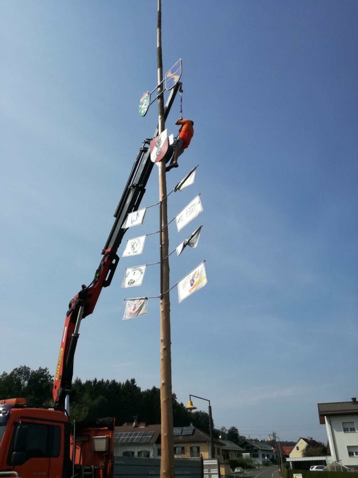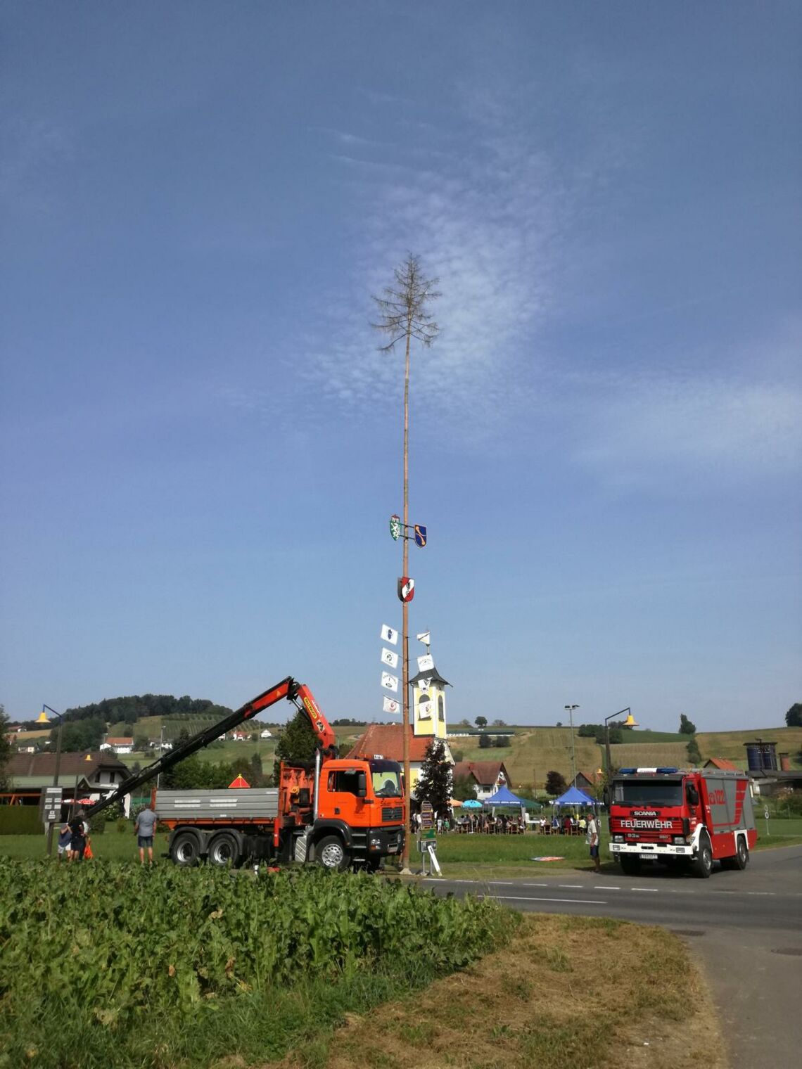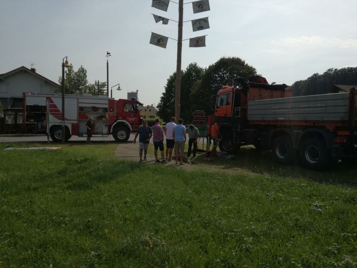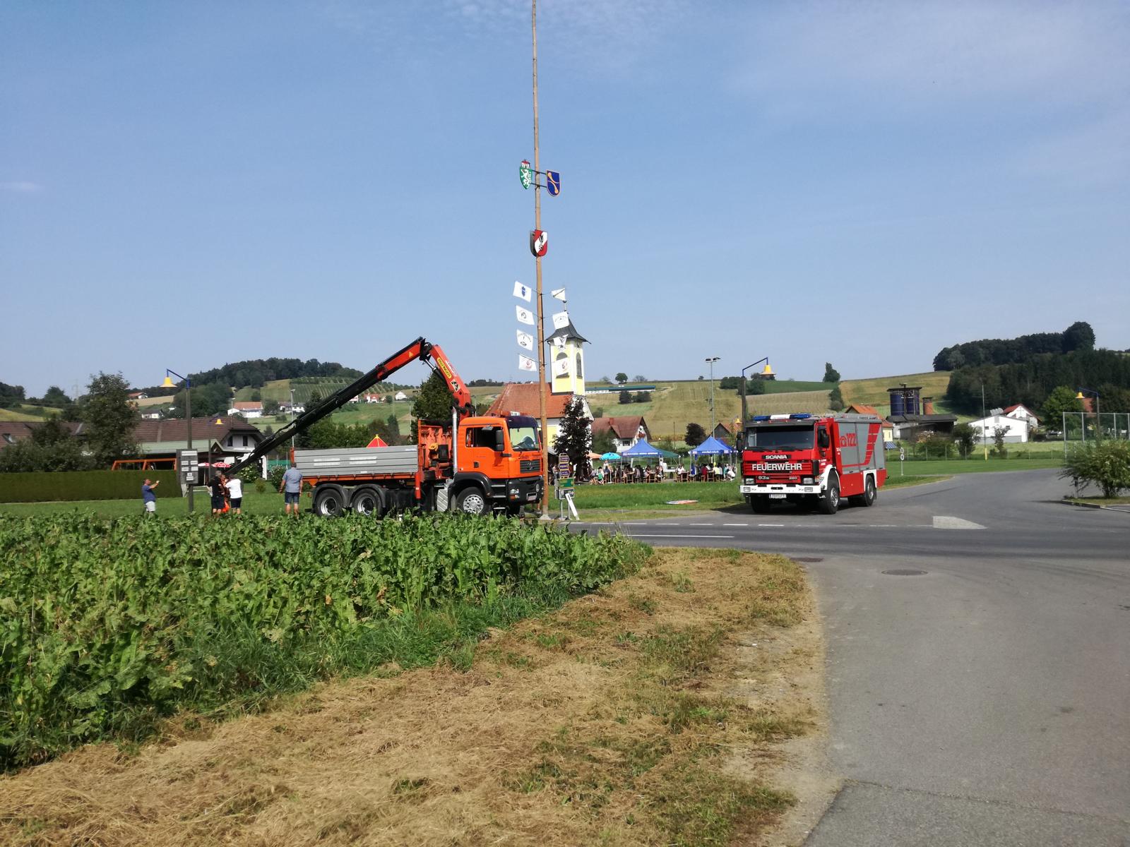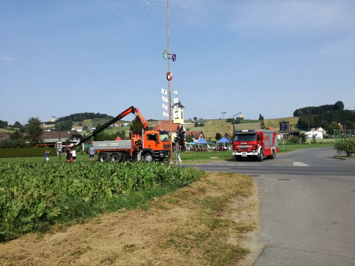 Die Kohlberger Vereine luden am 11. September wieder zum alljährlichen Maibaum umlegen. Während der Motorradklub sich um das leibliche Wohl der Besucher kümmerte übernahm die FF das Umlegen des Baumes. Neben unserem TLF wurde hierfür auch ein Kranfahrzeug der Fa. Schuster eingesetzt, das von unserem Kammeraden HLM Schwarzl August gesteuert wurde.
